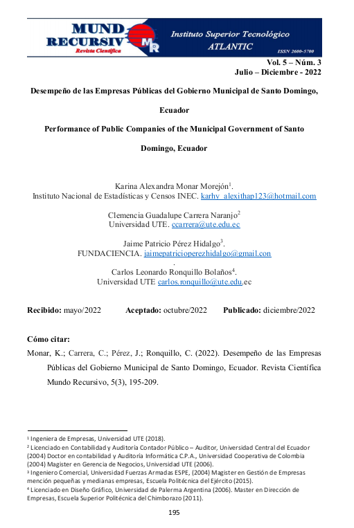 Desempeño de las Empresas Públicas del Gobierno Municipal de Santo Domingo, Ecuador